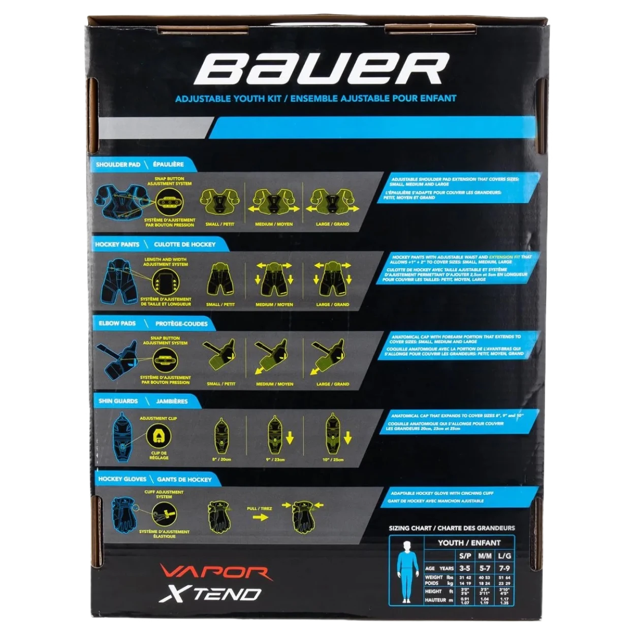 Set your little player up for success with the new VAPOR X-TEND PROTECTIVE KIT. Perfect for those new to the game and in need of equipment that will grow with them from season to season. Each item in the kit – gloves, pants, shoulder and elbows pads – are designed with a built-in size adjustment system that can extend as your player grows. This means less time shopping for new gear, and more time spent watching your little one fall in love with the game of hockey.